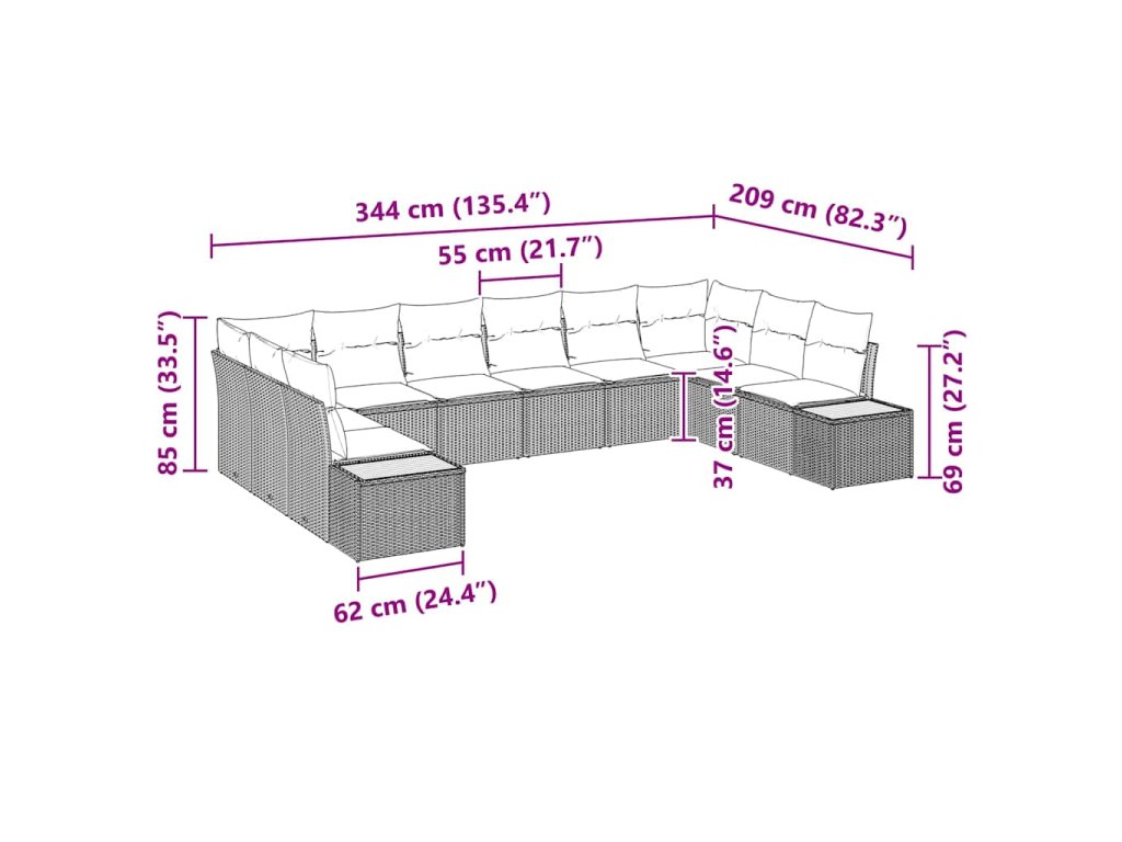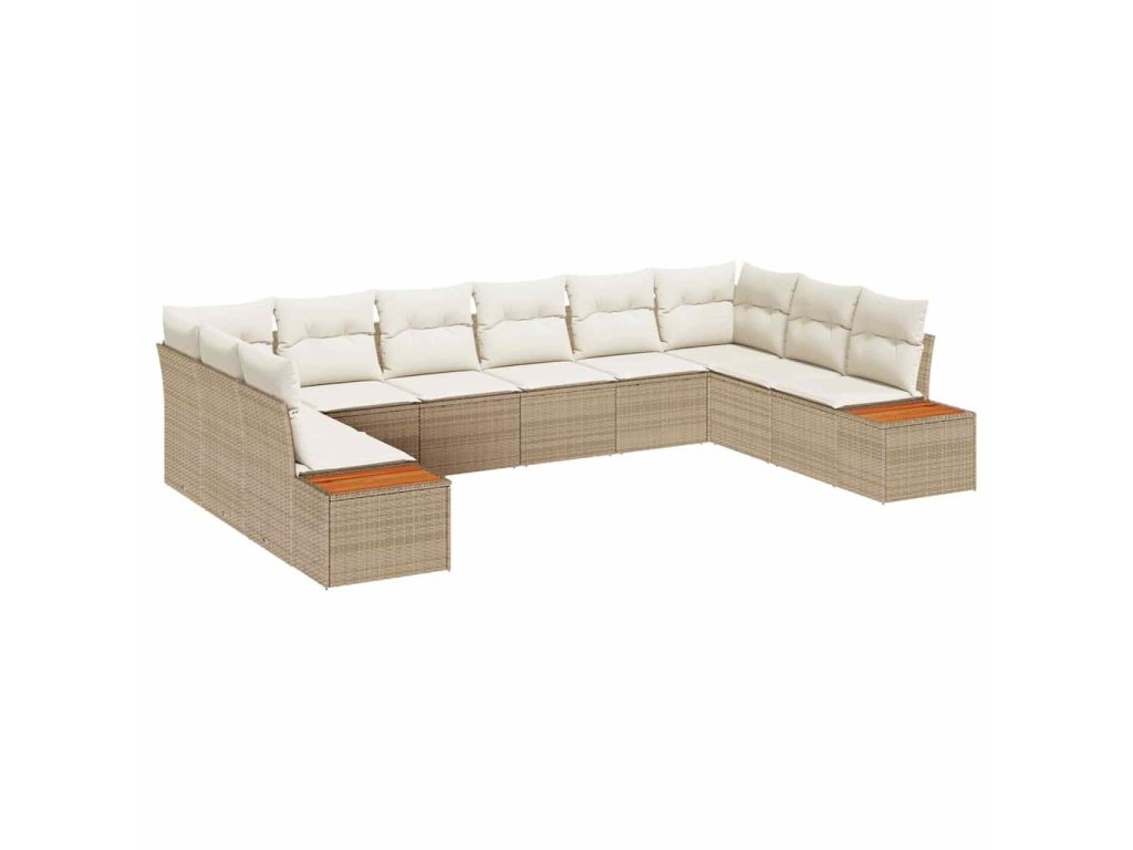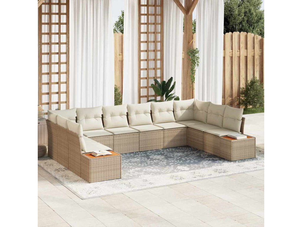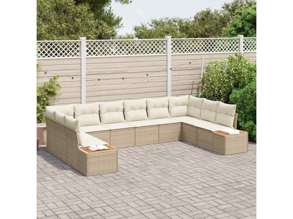 Súprava záhradných pohoviek s vankúšom 10 pcs Béžová Poly ratan 3348177