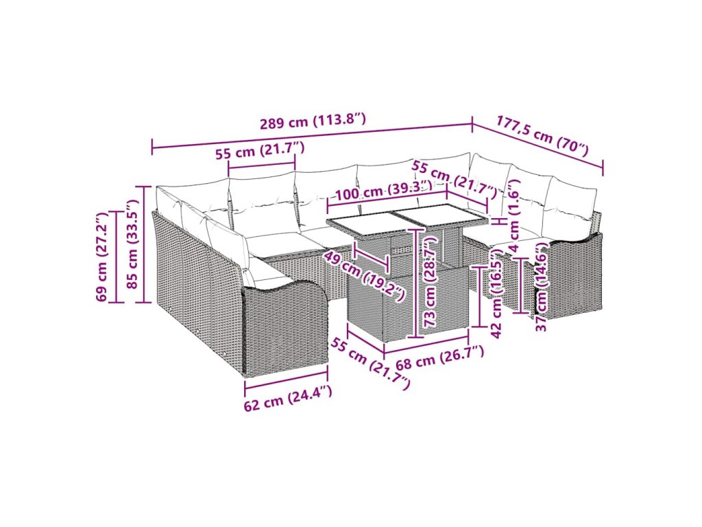 - Materiály odolné voči počasiu: Set je vyrobený z poly ratanu, ktorý zvládne všetky počasie a udrží si krásu. Tento materiál odoláva vlhkosti aj slnečnému žiareniu, takže je ideálny na vonku a poskytuje pohodlie aj v nepriaznivom počasí.