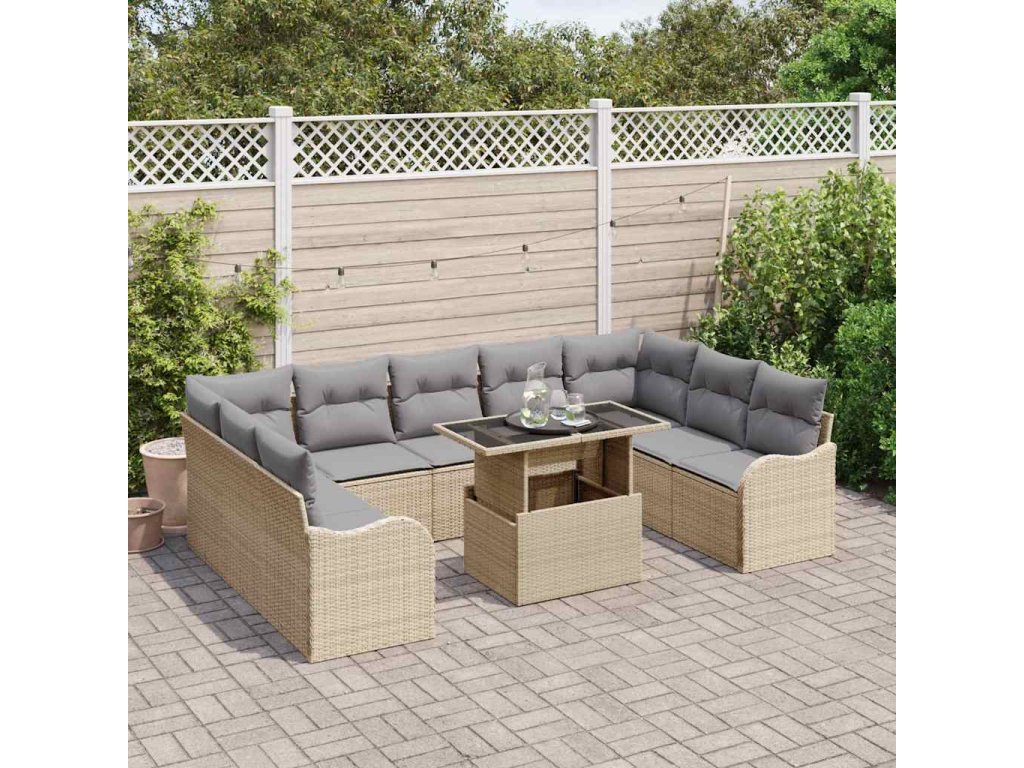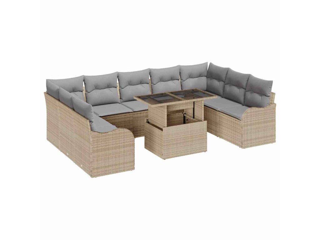 Súprava záhradných pohoviek s vankúšom 10 pcs Béžová Poly ratan 3348526