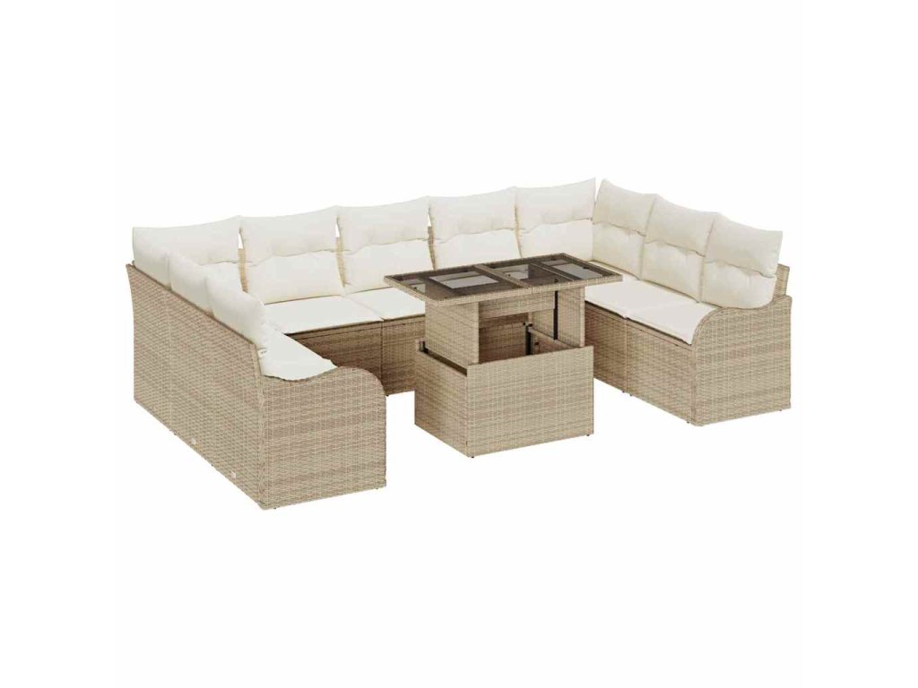 Súprava záhradných pohoviek s vankúšom 10 pcs Béžová Poly ratan 3348527