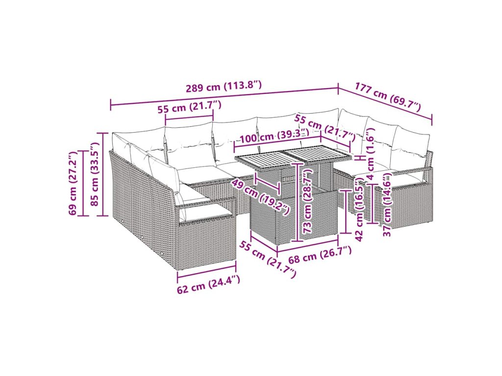 Tento záhradný gaučový set je skvelou voľbou pre pridanie moderného, adaptabilného prostredia do vášho vonkajšieho obytného priestoru. Poly ratanová konštrukcia spolu s oceľou s práškovou povrchovou úpravou poskytuje pevný a štýlový variant na relaxáciu alebo zábavu hostí. Jeho modulárny dizajn umožňuje rôzne konfigurácie, čo ho robí vhodným pre rôzne vonkajšie nastavenia ako sú záhrady a terasy.