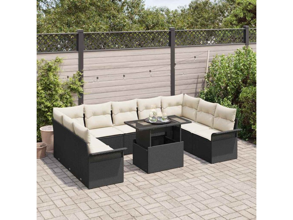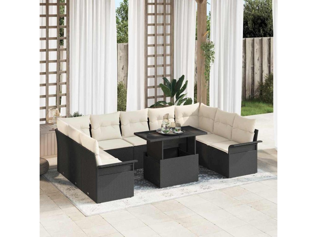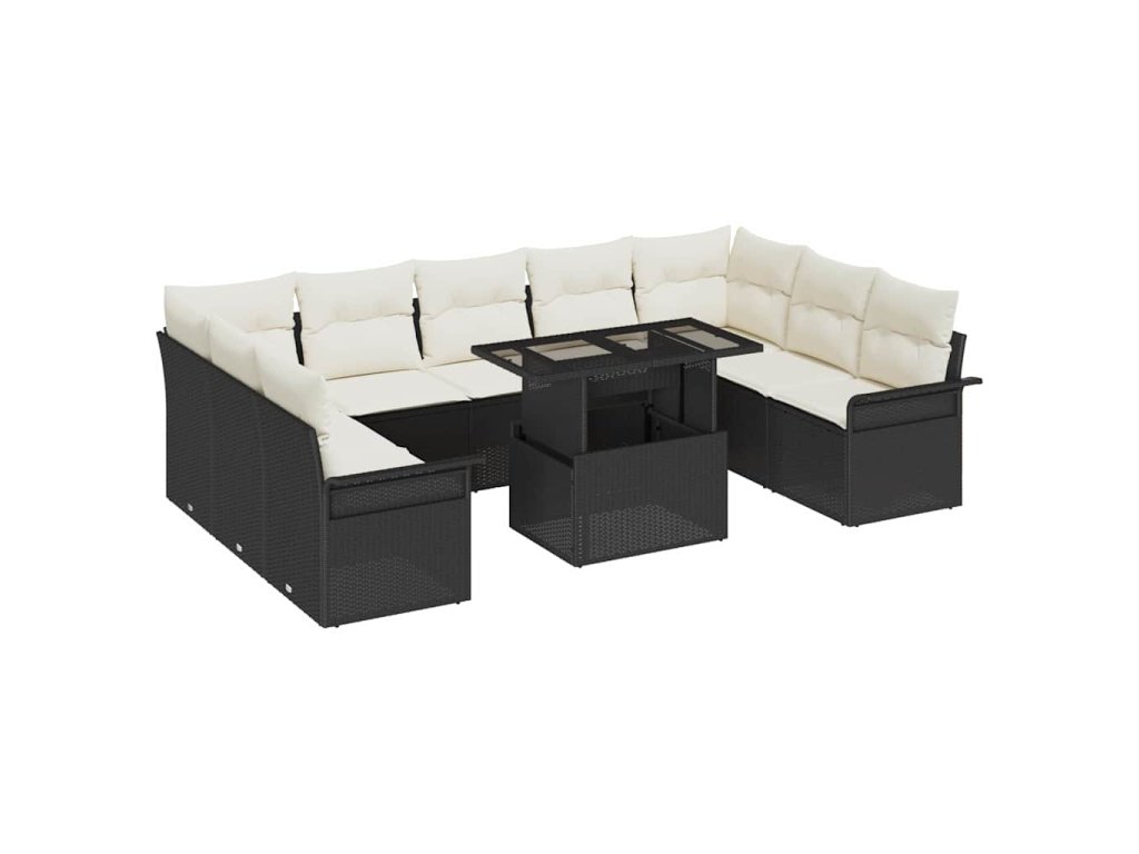 Súprava záhradných pohoviek s vankúšom 10 pcs Čierna Poly ratan 3348343