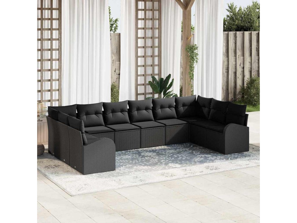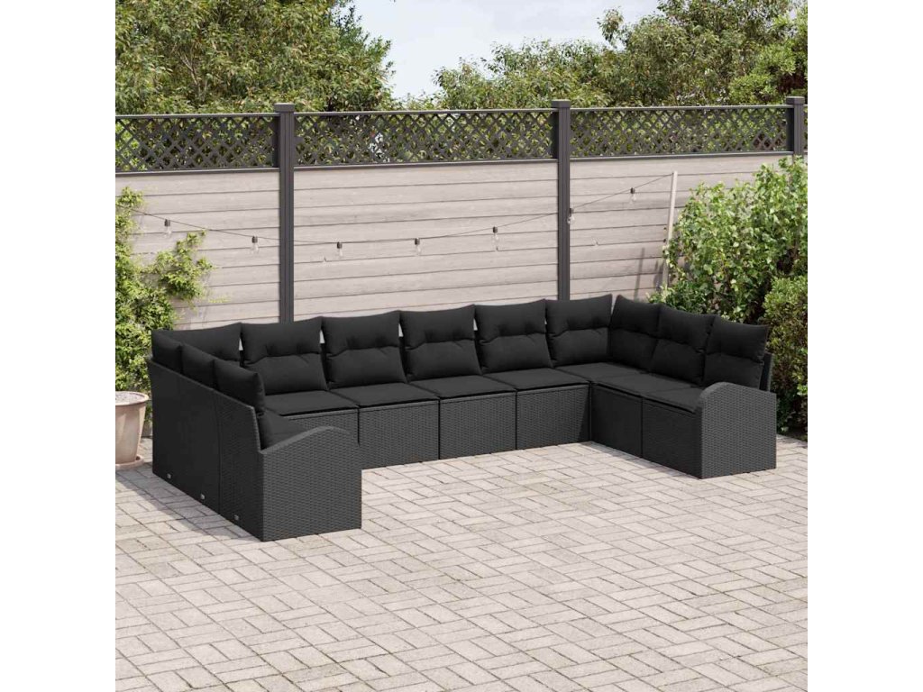 Súprava záhradných pohoviek s vankúšom 10 pcs Čierna polyratan 3354892