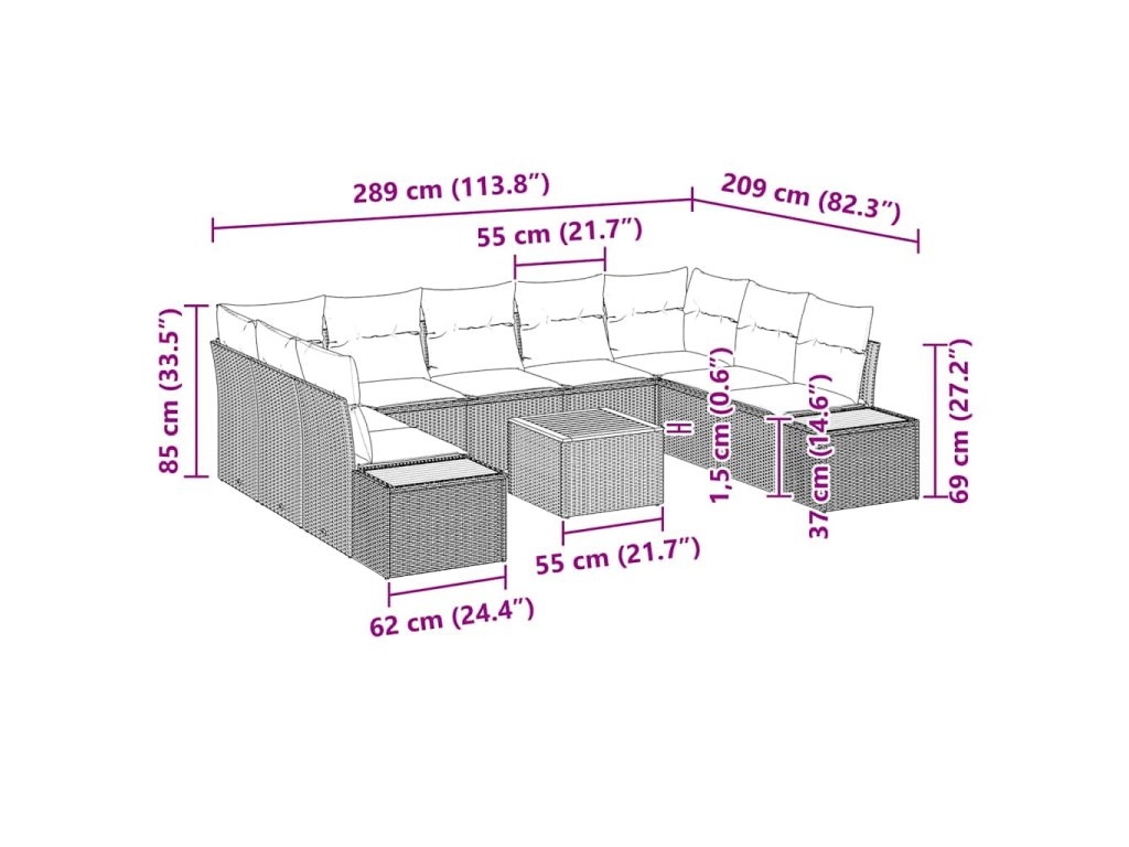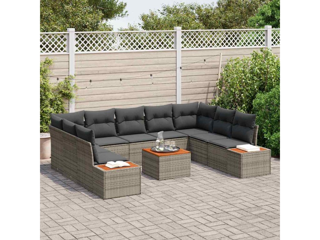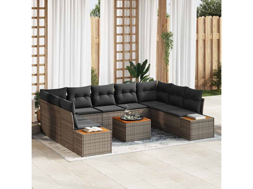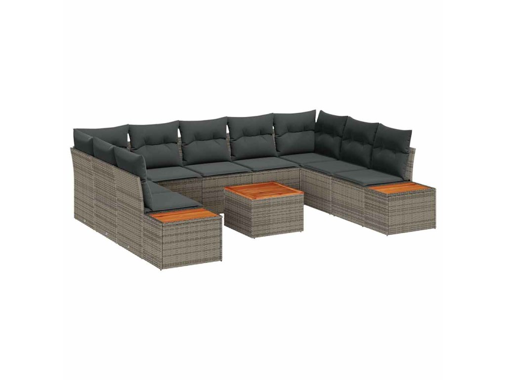 Súprava záhradných pohoviek s vankúšom 10 pcs Sivá Poly ratan 3348170