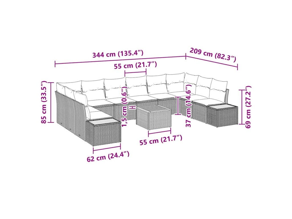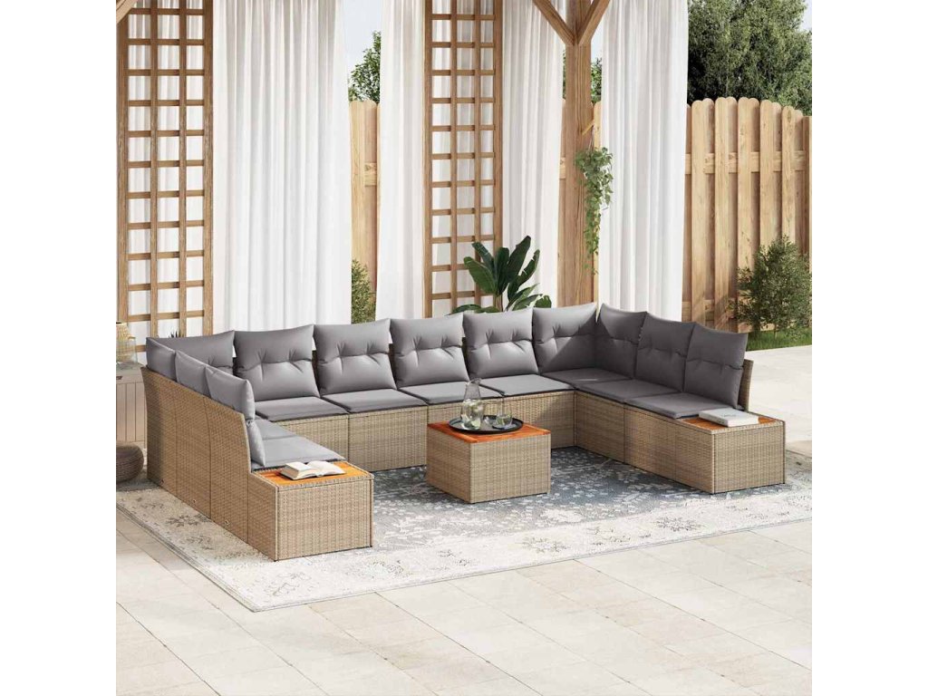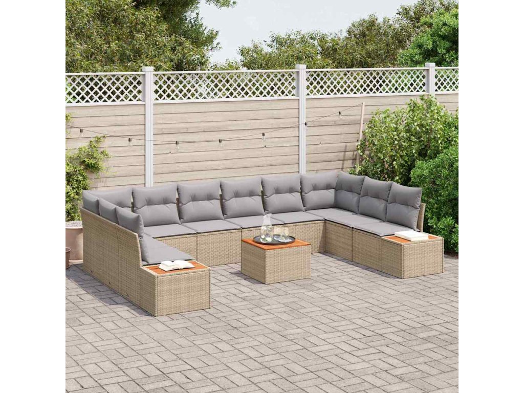 Súprava záhradných pohoviek s vankúšom 11 pcs Béžová Poly ratan 3348181