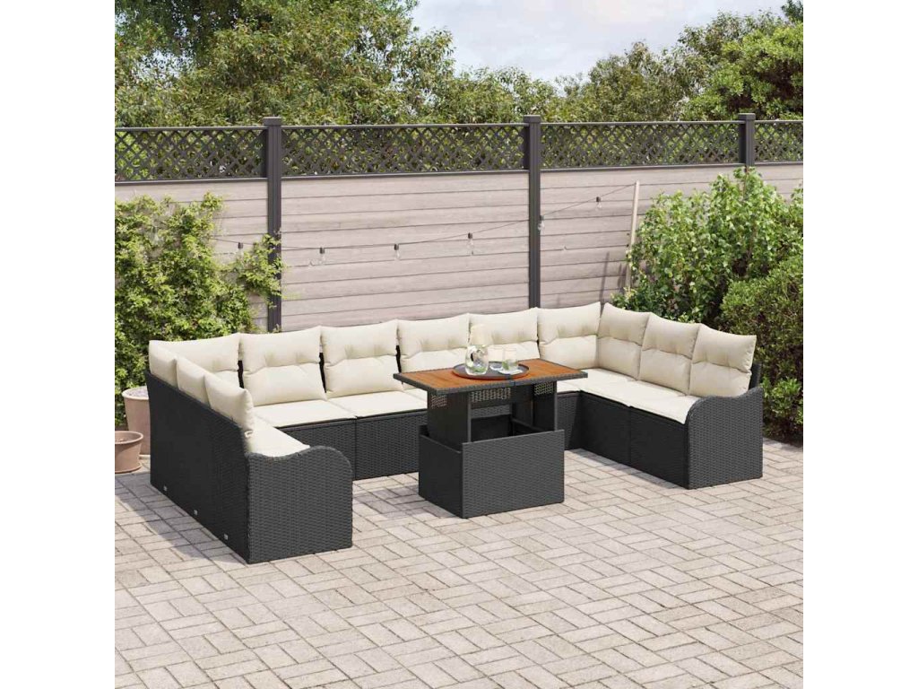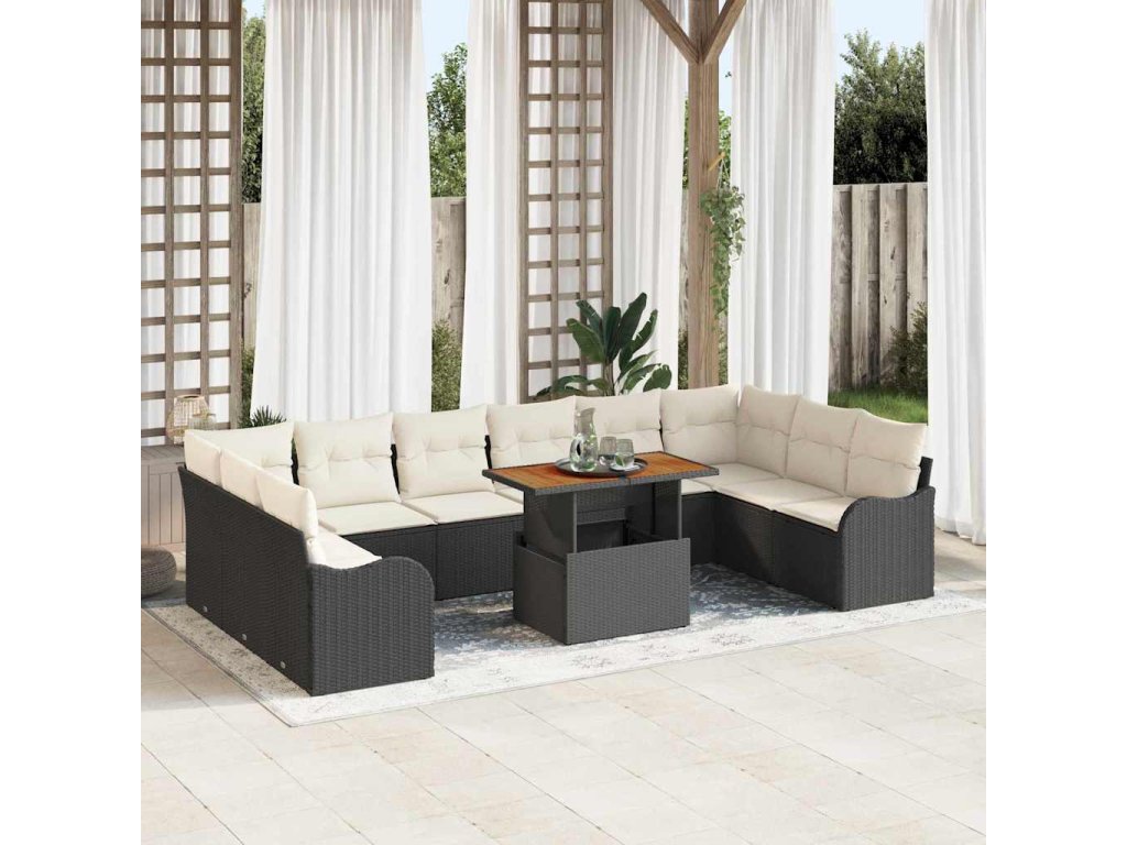 Súprava záhradných pohoviek s vankúšom 11 pcs Čierna a krémová 3349508