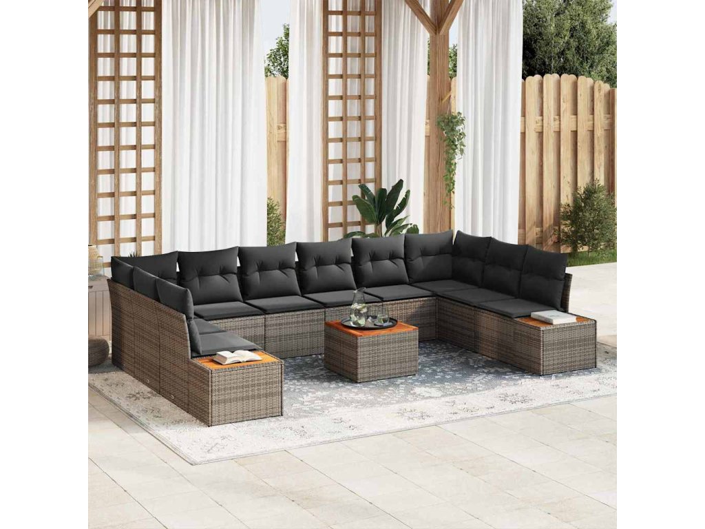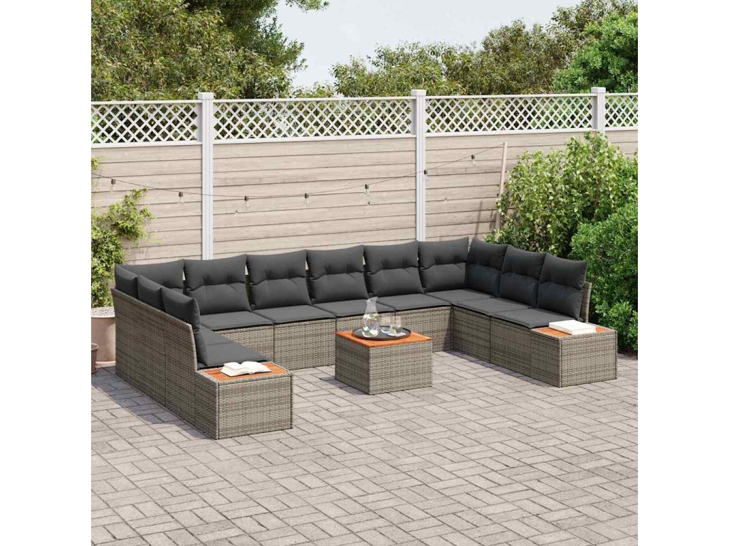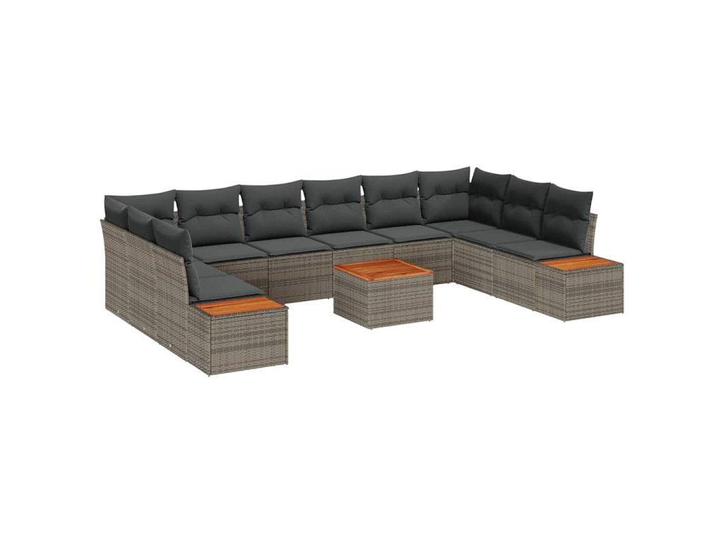 Súprava záhradných pohoviek s vankúšom 11 pcs Sivá Poly ratan 3348180