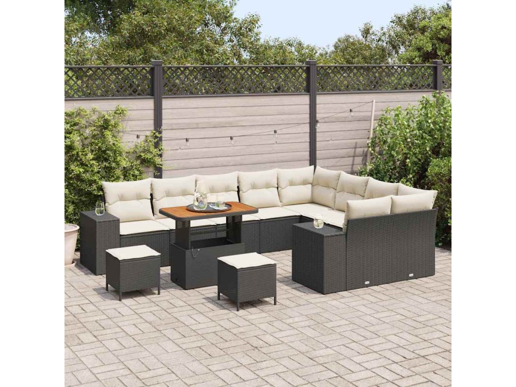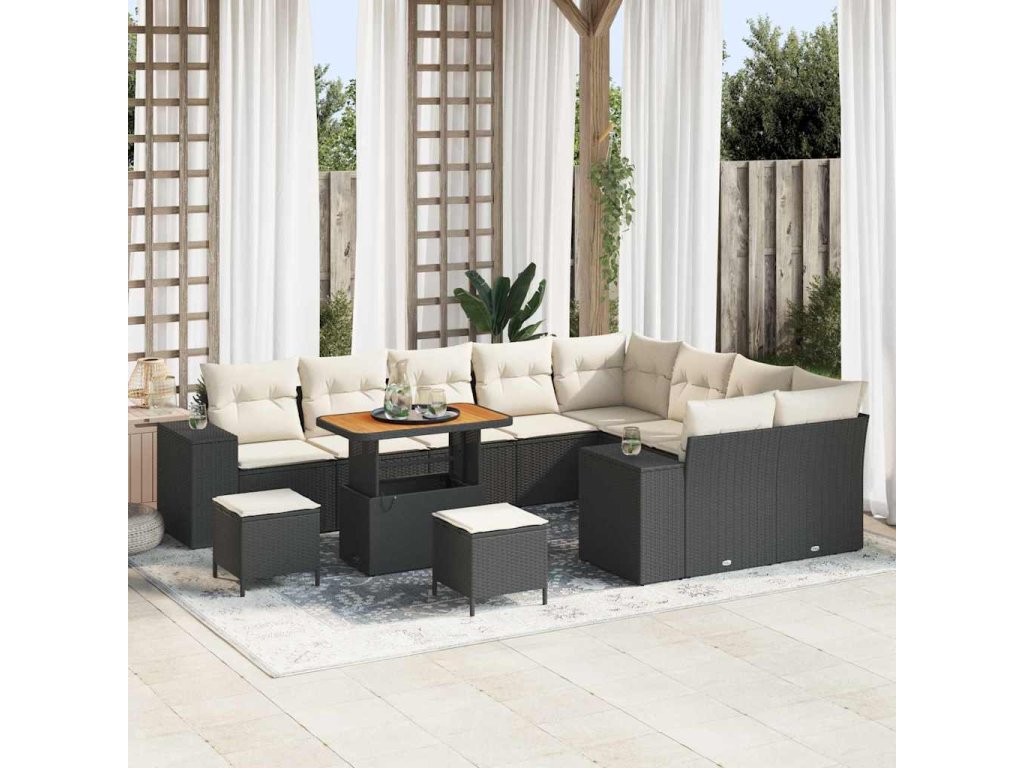 Súprava záhradných pohoviek s vankúšom 12 pcs Čierna polyratan 3362045