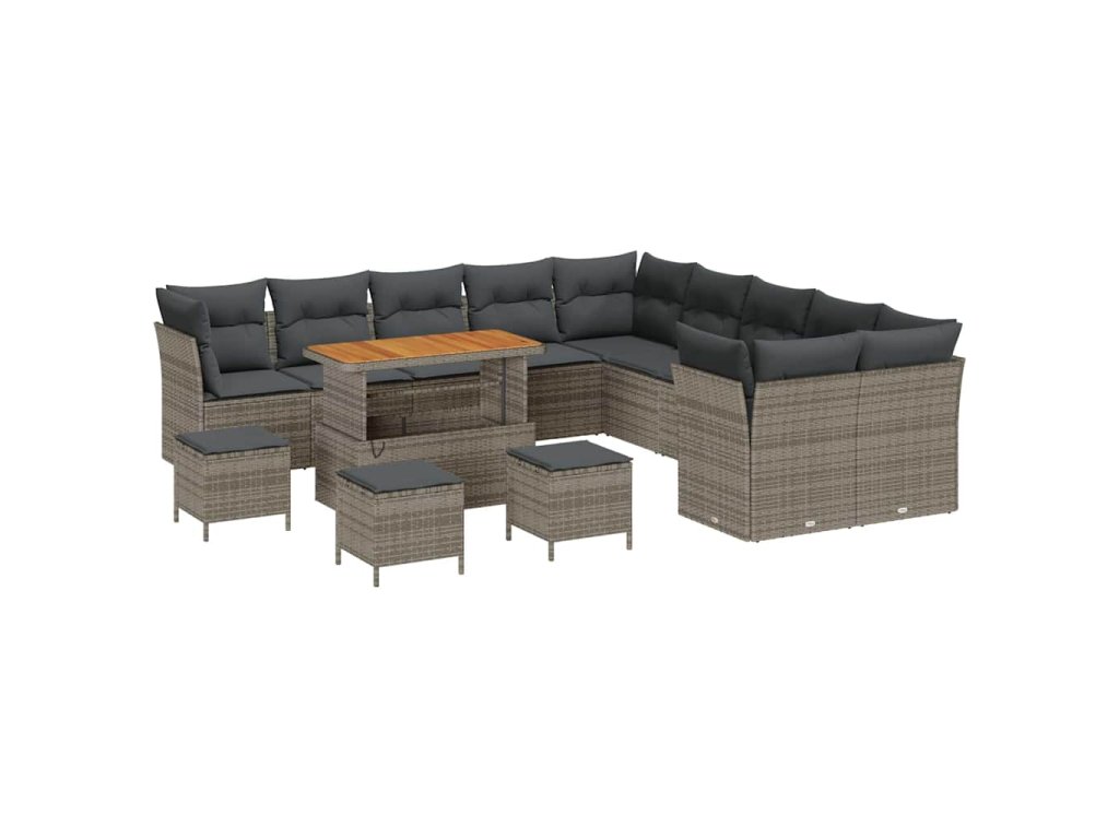 Súprava záhradných pohoviek s vankúšom 14 pcs Sivá polyratan 3363503