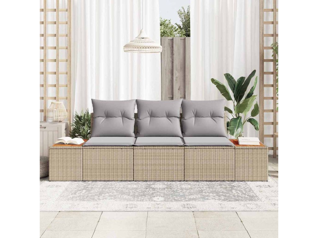 Súprava záhradných pohoviek s vankúšom 3 pcs Béžová polyratan 3348016