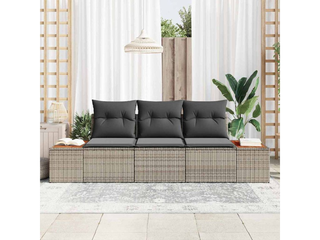 Súprava záhradných pohoviek s vankúšom 3 pcs Sivá polyratan 3348015