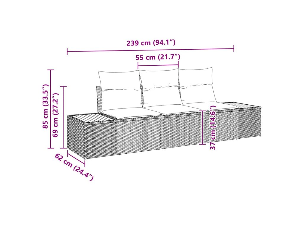 - 2 x Bočné sofa: 55 x 55 x 37 cm (ŠxHxV)