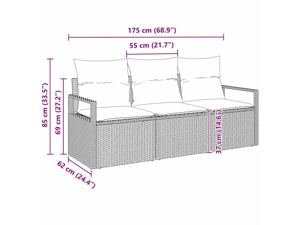 Tento set pohovky do záhrady prináša moderný, minimalistický dizajn vhodný pre akýkoľvek vonkajší priestor. Je vyrobený z polyratanu, ktorý dodáva sofistikovanosť a pohodlné sedenie pre záhrady a terasy. Každý kúsok tejto súpravy je navrhnutý s citom pre moderný štýl a prakticky kombinuje funkčnosť s vizuálnym pôvabom. Ideálny na relaxáciu i zábavu, jeho jednoduché línie a pozývajúci vzhľad vytvárajú v každom vonkajšom prostredí relaxačnú oázu.