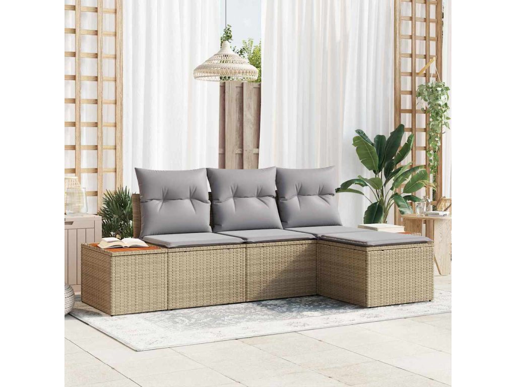 Súprava záhradných pohoviek s vankúšom 4 pcs Béžová polyratan 3348061