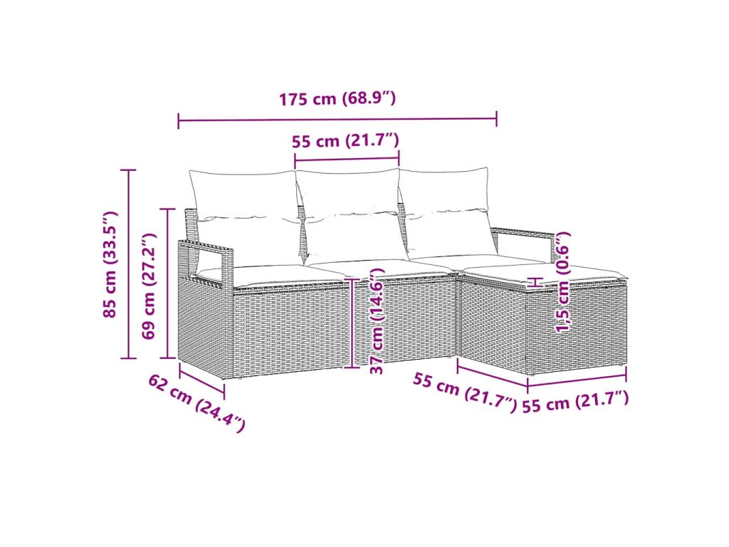 - Pokyny na údržbu: Starostlivosť o ňu je jednoduchá: používaj kryt, keď ju nepoužívaš, aby si ju ochránil pred zlým počasím. Tak zabezpečíš, že zostane v skvelej kondícii. Pravidelné čistenie jemnými metódami udrží pohovku lákavú a sviežu, keď ju budeš najviac potrebovať.