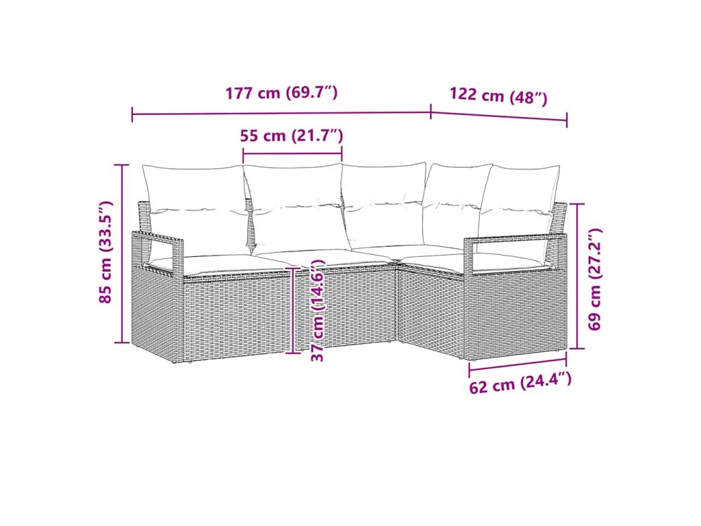 - Všestranné použitie Tento pohovkový set je dokonalý pre rôzne vonkajšie priestory, skracuje vzdialenosti medzi záhradami, terasami a relaxačnými zónami. Jeho flexibilita robí z neho skvelý výber pre domácnosti, ktoré chcú vylepšiť svoj vonkajší priestor.