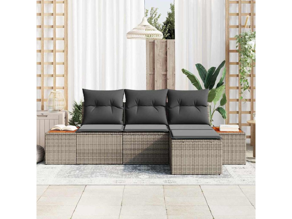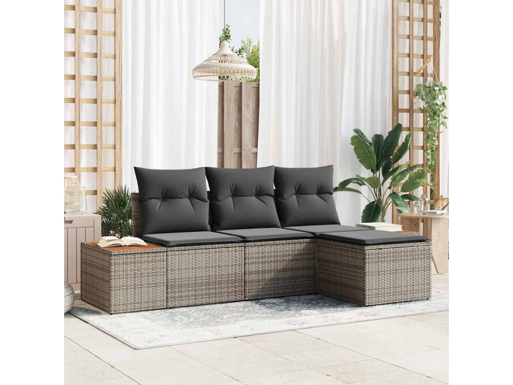 Súprava záhradných pohoviek s vankúšom 4 pcs Sivá polyratan 3348060