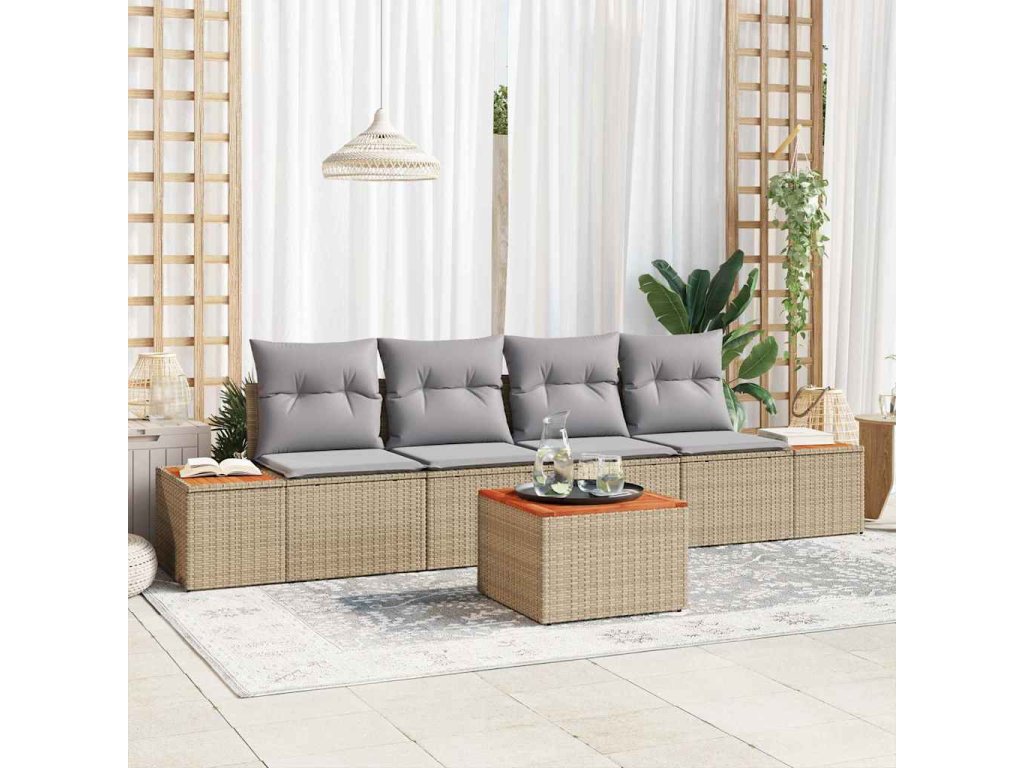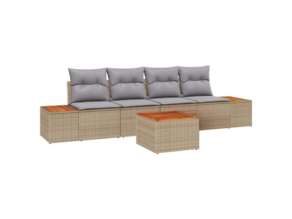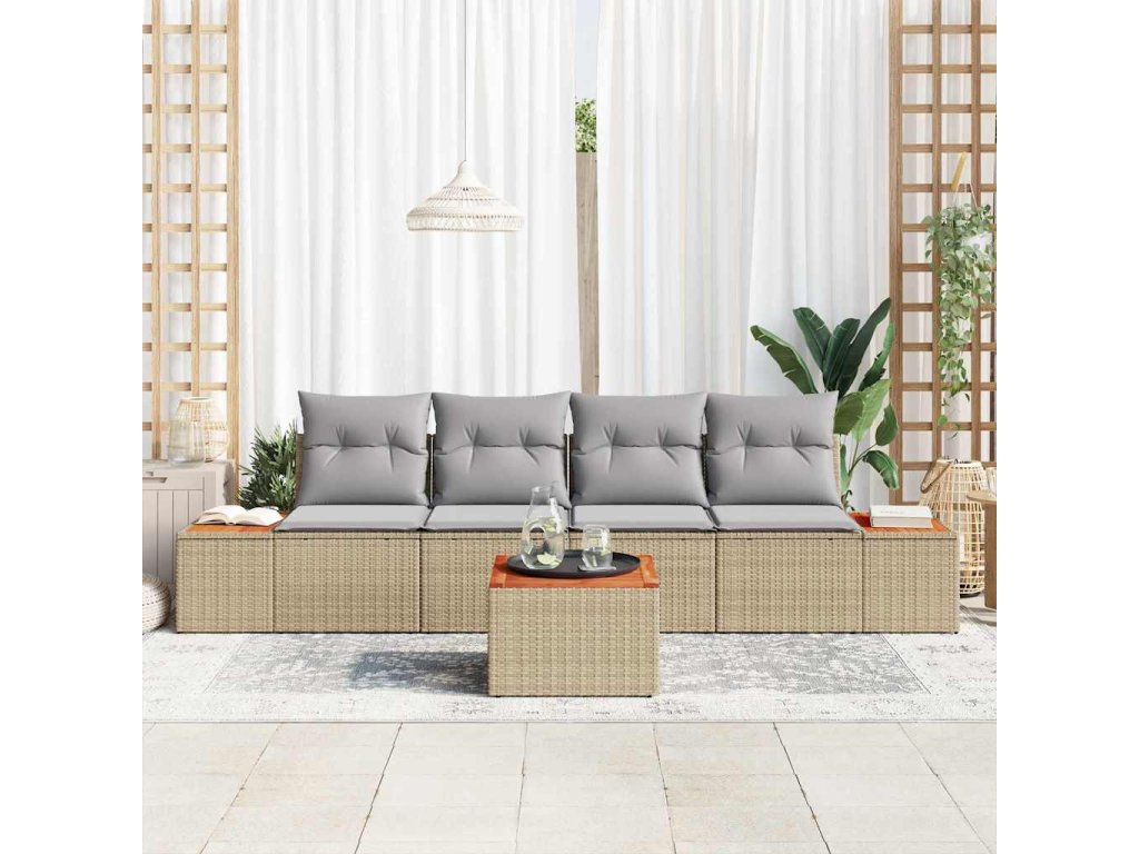 Súprava záhradných pohoviek s vankúšom 5 pcs Béžová Poly ratan 3348021