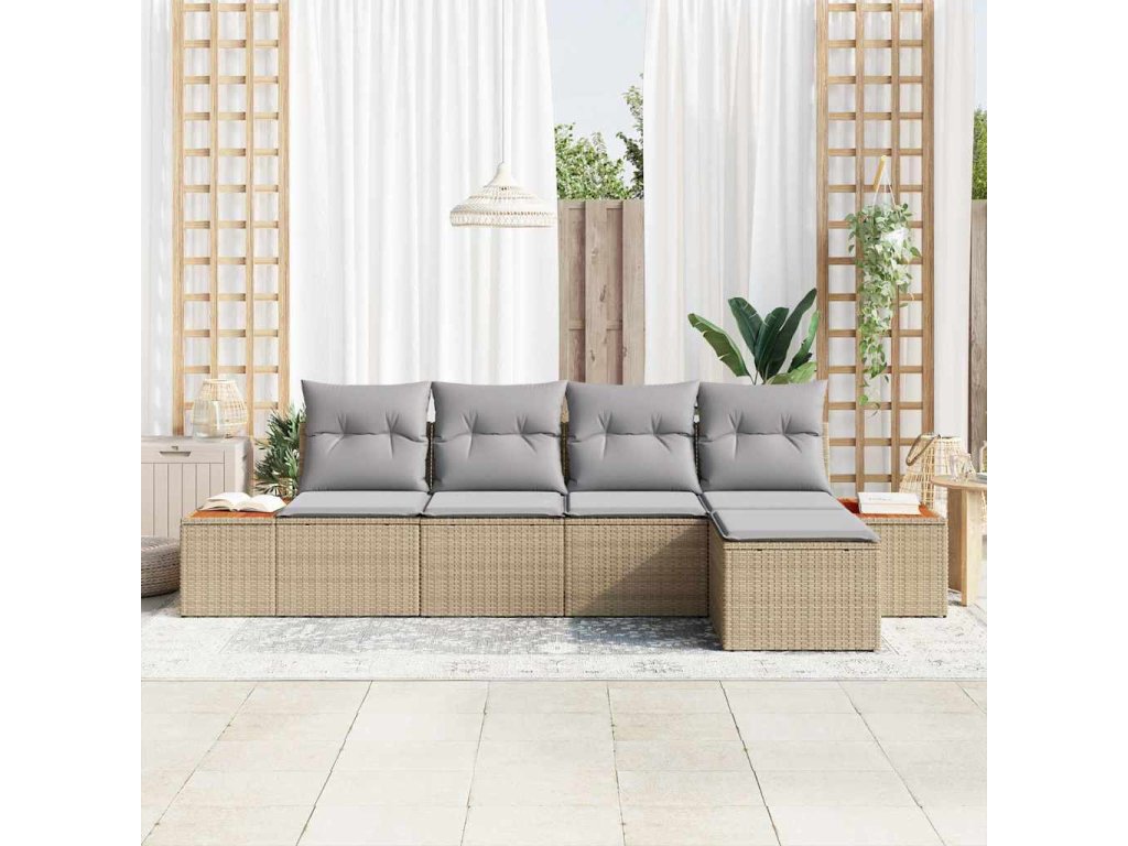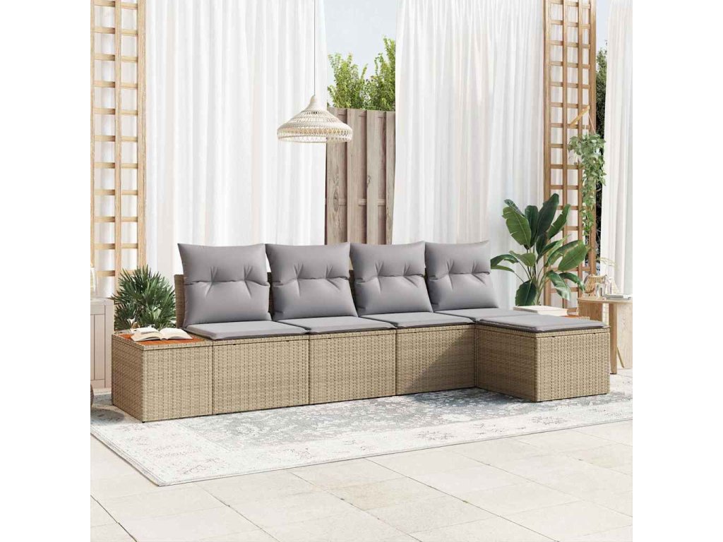 Súprava záhradných pohoviek s vankúšom 5 pcs Béžová Poly ratan 3348066