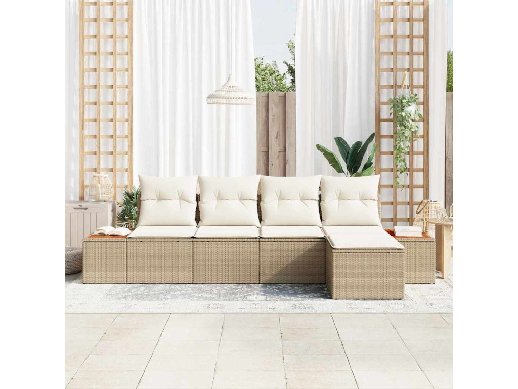 Súprava záhradných pohoviek s vankúšom 5 pcs Béžová Poly ratan 3348067