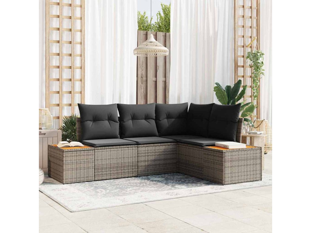 - Trvácna konštrukcia: Tento set, vyrobený z poly ratanového materiálu, je mimoriadne odolný voči UV žiareniu a každodennému používaniu. Oceľový rám s práškovou povrchovou úpravou zaisťuje stabilitu a dlhú životnosť. Akáciové drevo dodáva elegantný vzhľad a odolnosť voči vonkajším podmienkam.