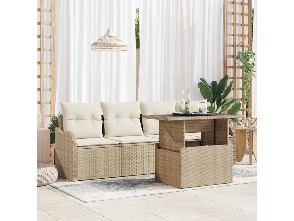 Súprava záhradných pohoviek s vankúšom 5 pcs Béžová Poly ratan 3348367