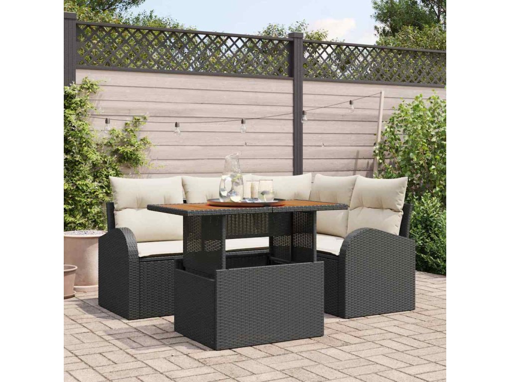 Súprava záhradných pohoviek s vankúšom 5 pcs Čierna a krémová 3349578