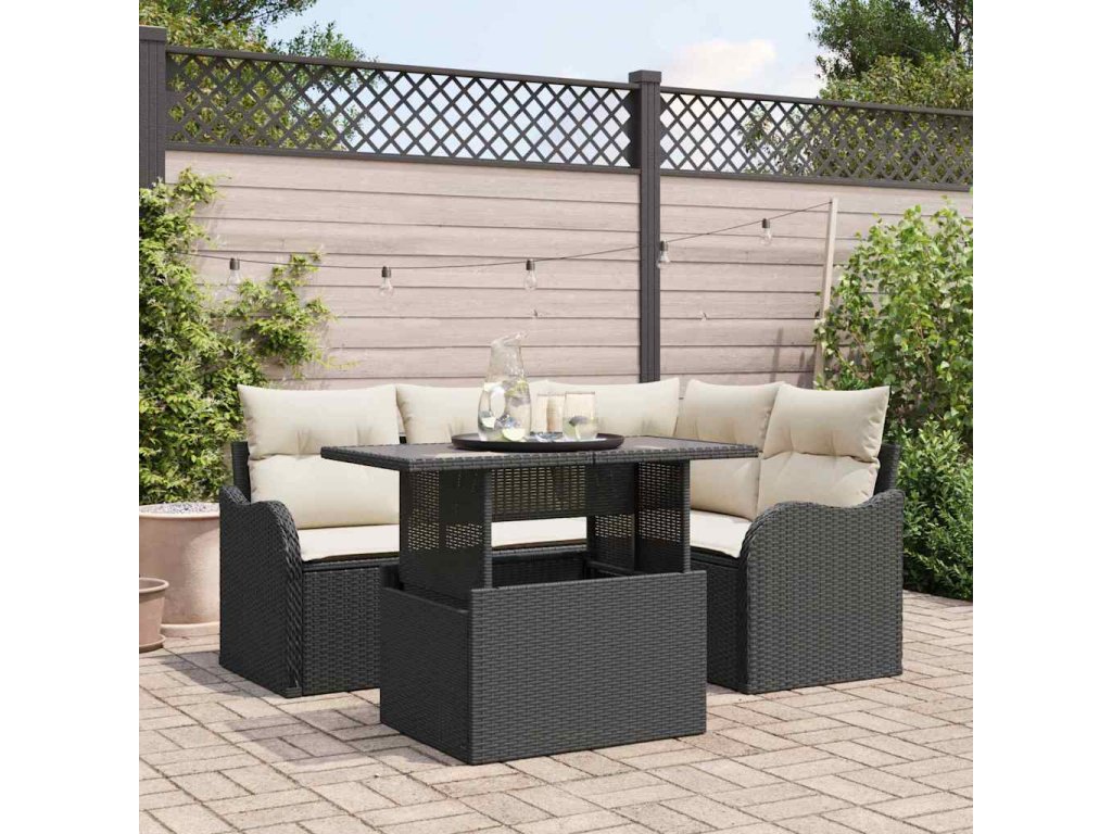 Súprava záhradných pohoviek s vankúšom 5 pcs Čierna Poly ratan 3348453