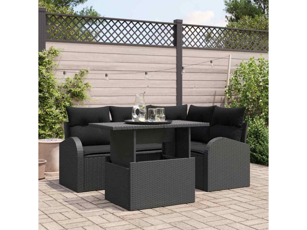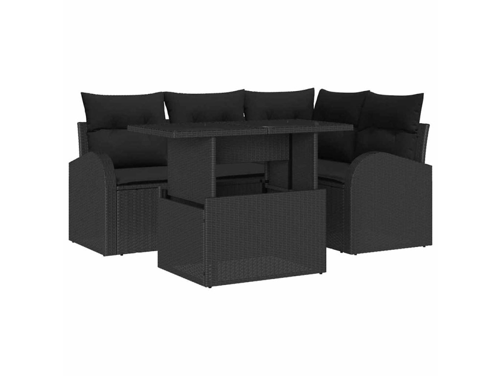 Súprava záhradných pohoviek s vankúšom 5 pcs Čierna Poly ratan 3348639