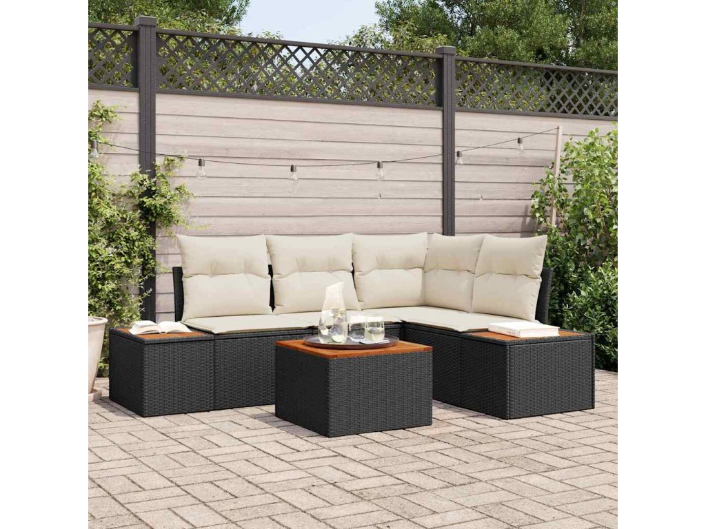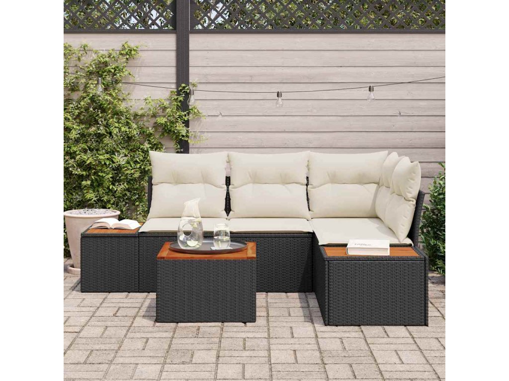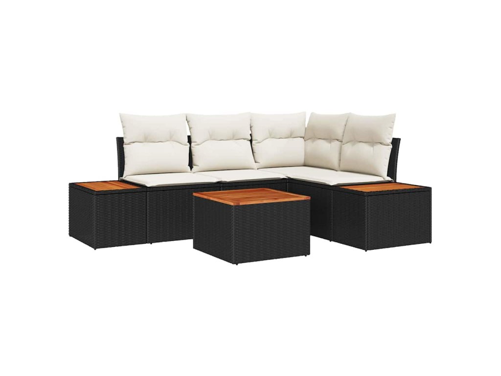 Súprava záhradných pohoviek s vankúšom 5 pcs Čierna polyratan 3348078