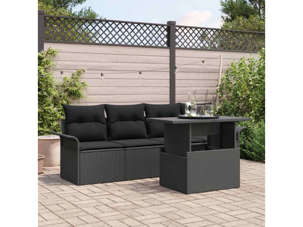 Súprava záhradných pohoviek s vankúšom 5 pcs Čierna polyratan 3348189