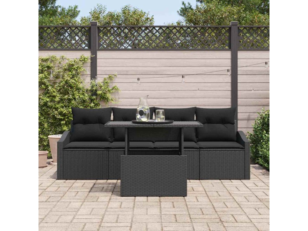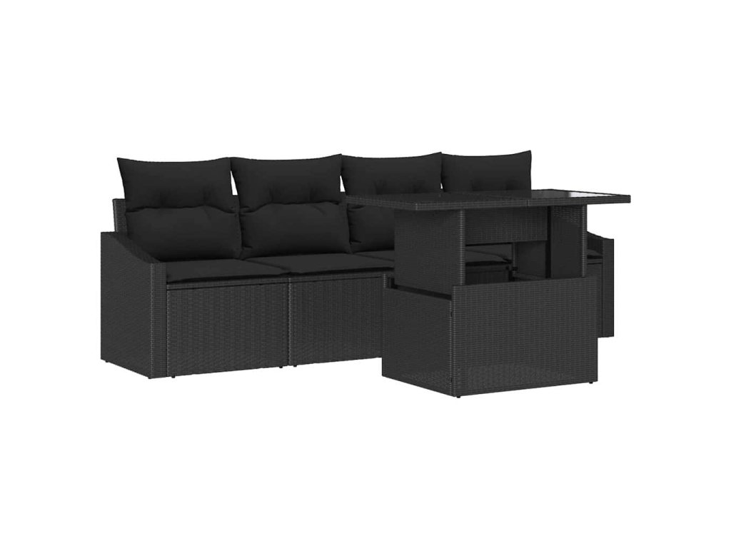 Súprava záhradných pohoviek s vankúšom 5 pcs Čierna polyratan 3348909