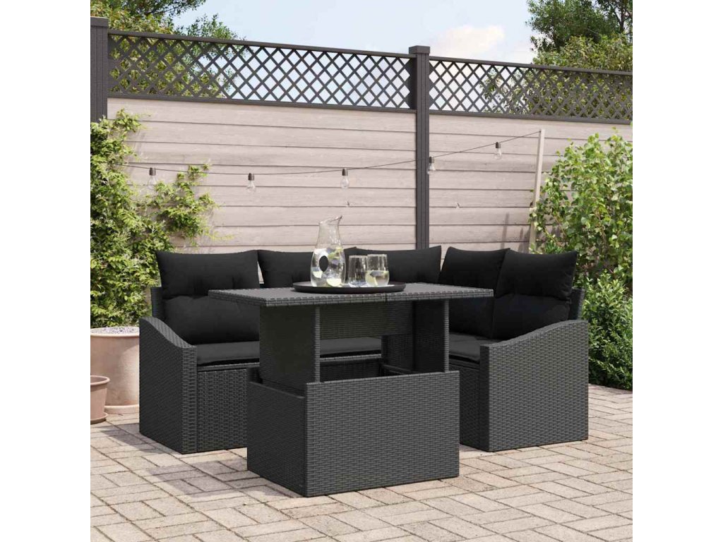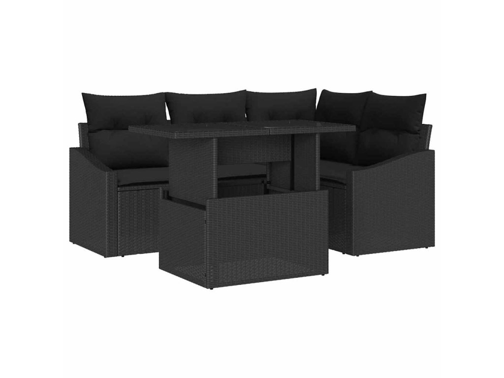 Súprava záhradných pohoviek s vankúšom 5 pcs Čierna polyratan 3348999