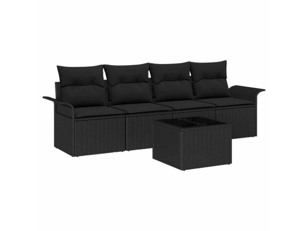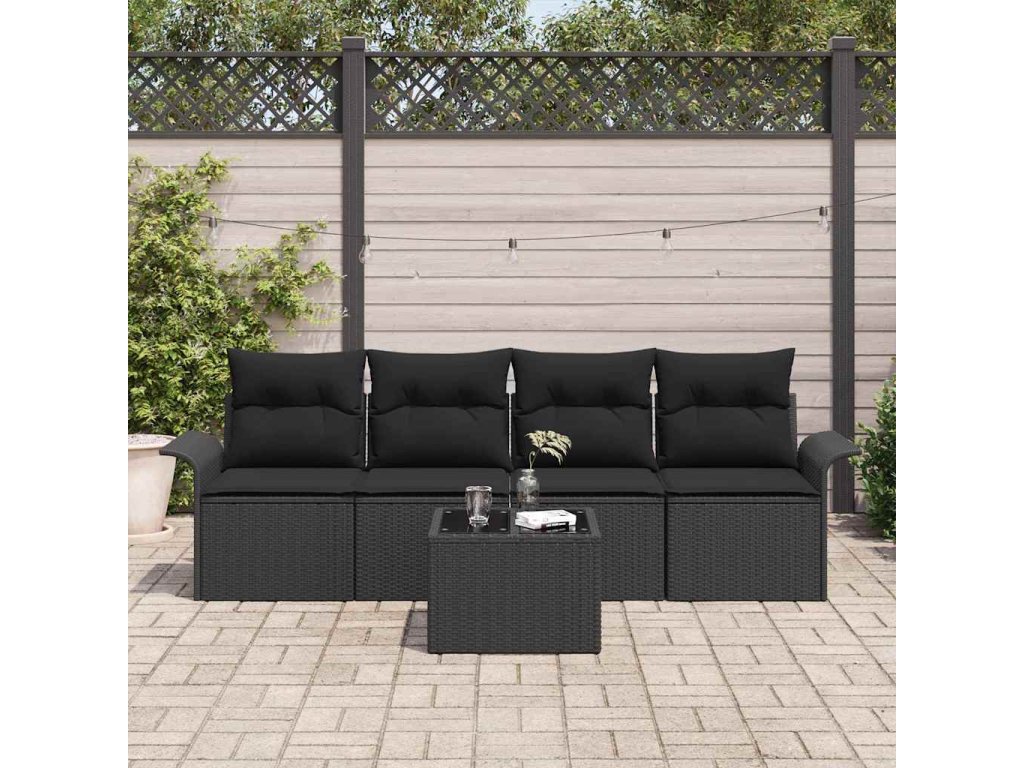 Súprava záhradných pohoviek s vankúšom 5 pcs Čierna polyratan 3353902