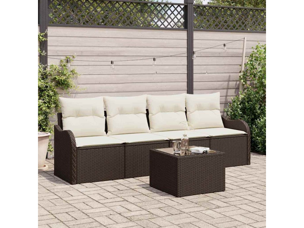 Súprava záhradných pohoviek s vankúšom 5 pcs Hnedá a smotanová 3354237