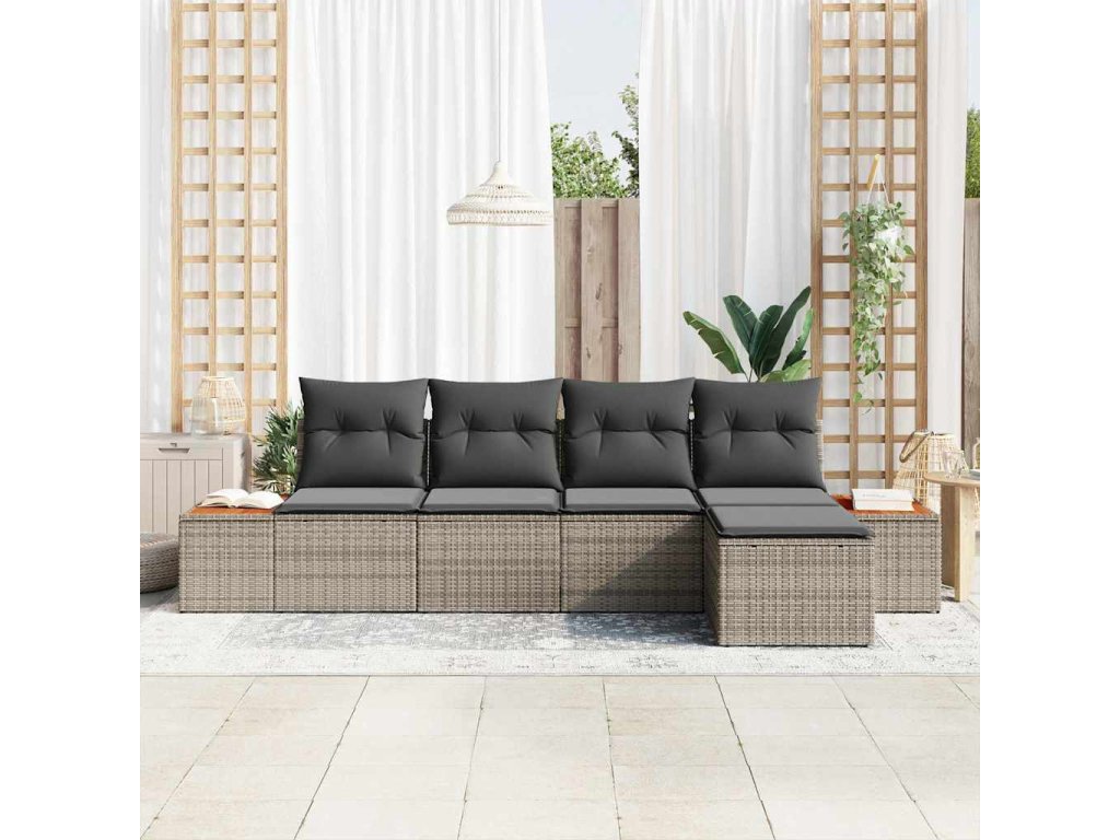 Súprava záhradných pohoviek s vankúšom 5 pcs Sivá Poly ratan 3348065