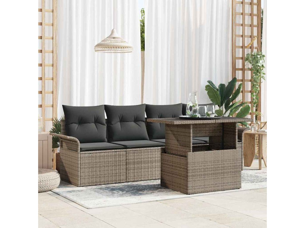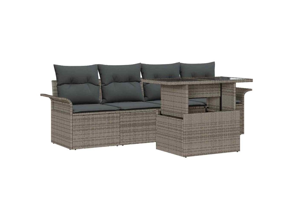 Súprava záhradných pohoviek s vankúšom 5 pcs Sivá polyratan 3348185