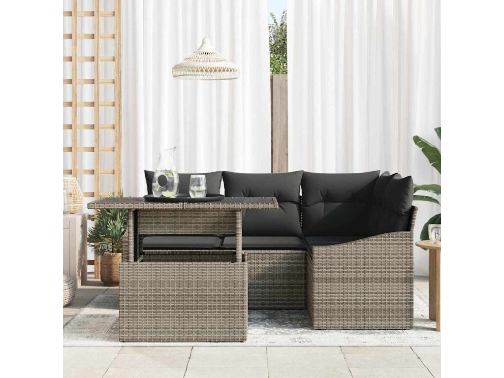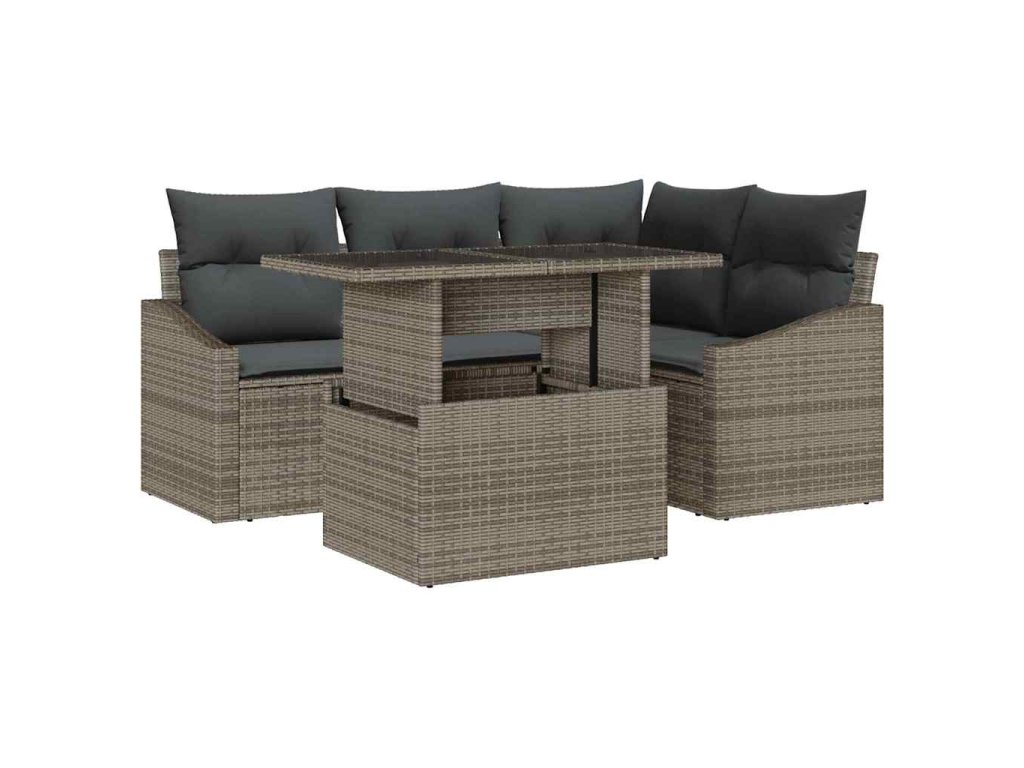 Súprava záhradných pohoviek s vankúšom 5 pcs Sivá polyratan 3348995