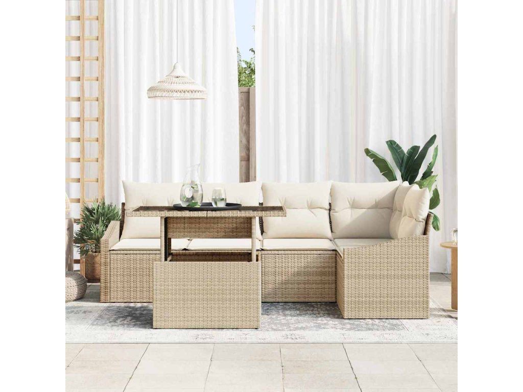 Súprava záhradných pohoviek s vankúšom 6 pcs béžová a kremová 3349007