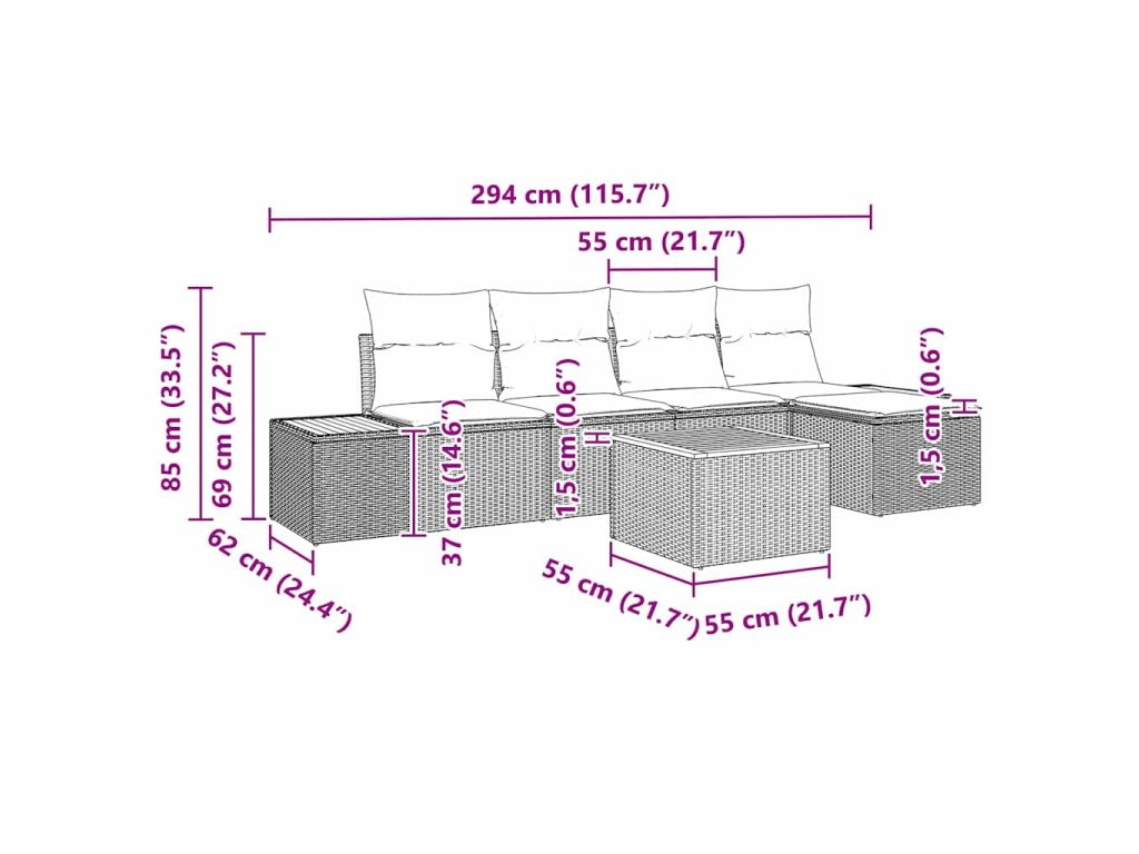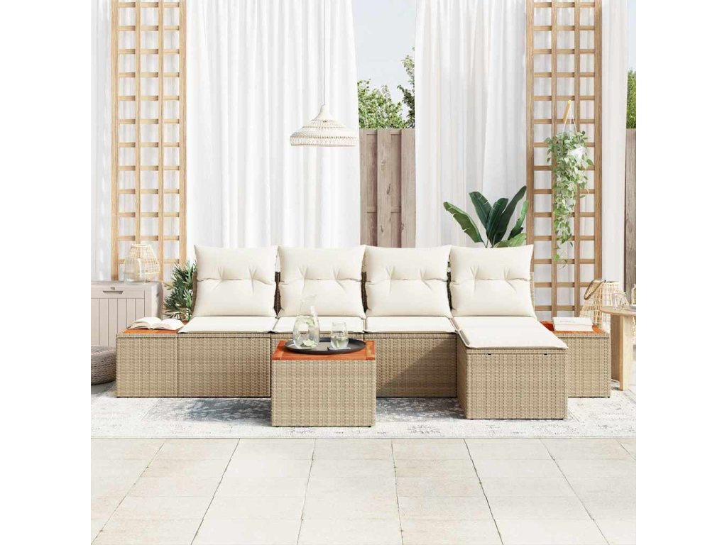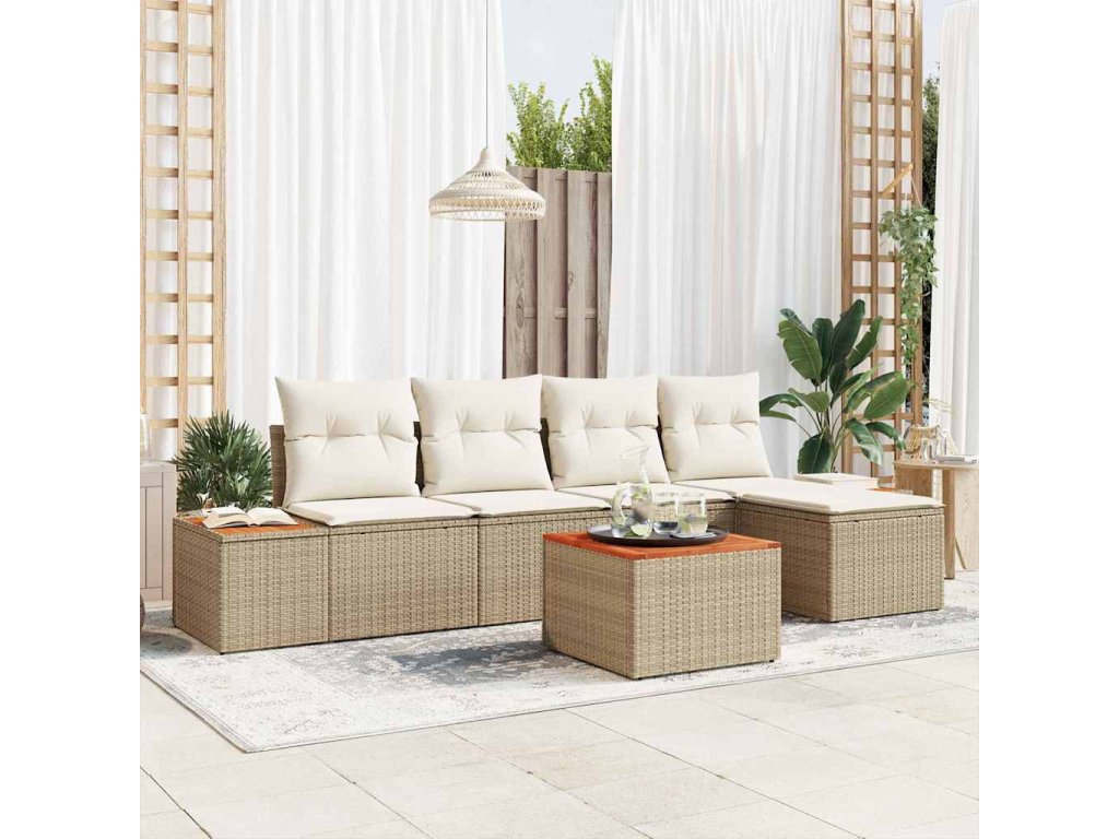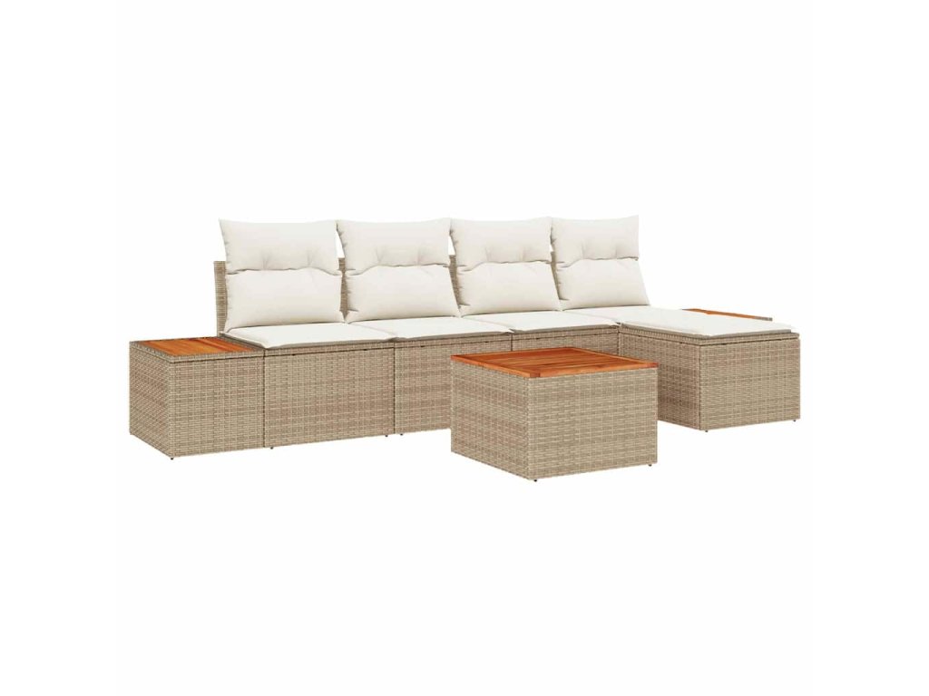 Súprava záhradných pohoviek s vankúšom 6 pcs Béžová polyratan 3348072