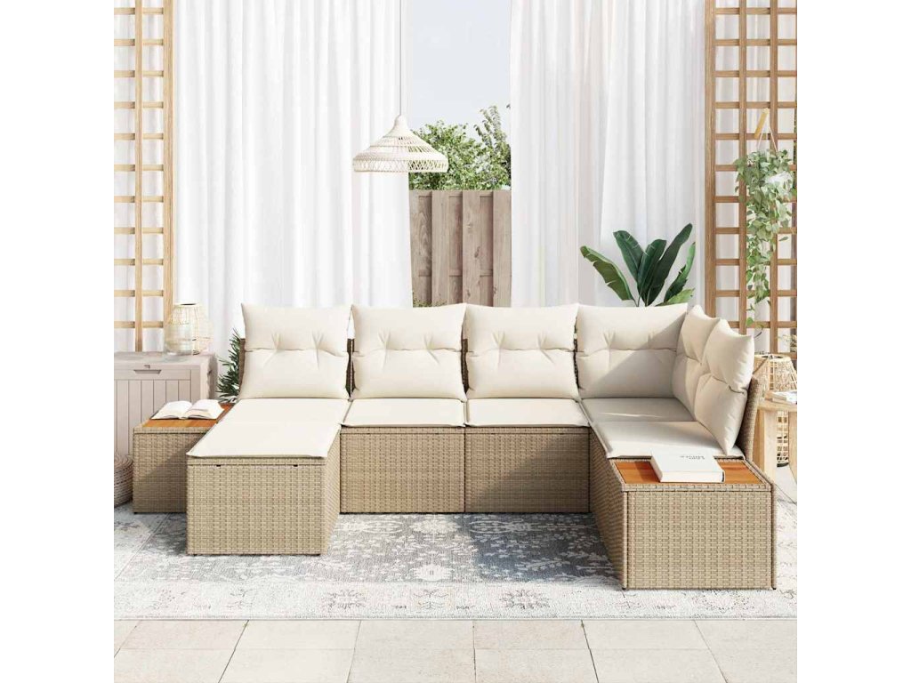 Súprava záhradných pohoviek s vankúšom 6 pcs Béžová polyratan 3348122