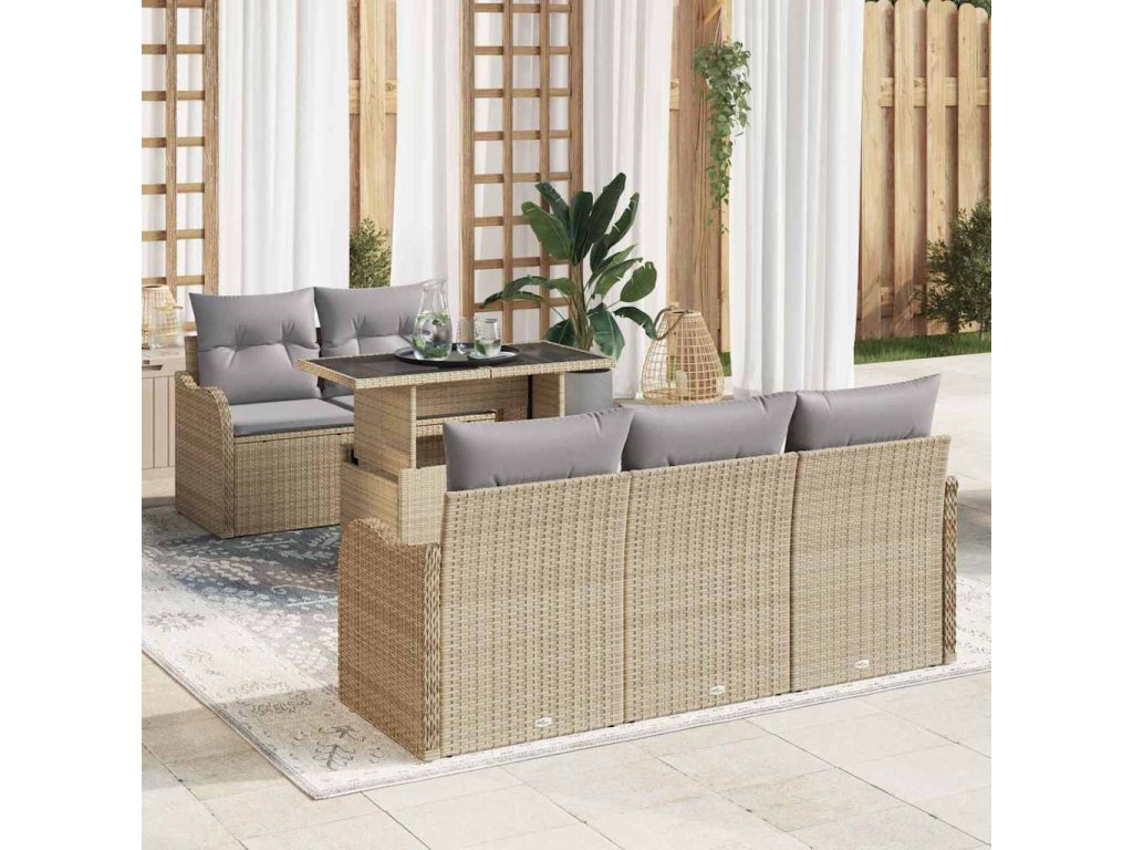 Súprava záhradných pohoviek s vankúšom 6 pcs Béžová polyratan 3348376