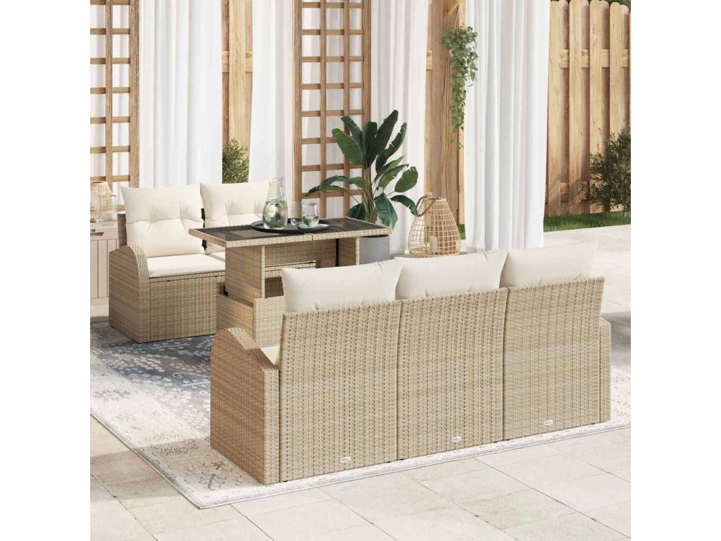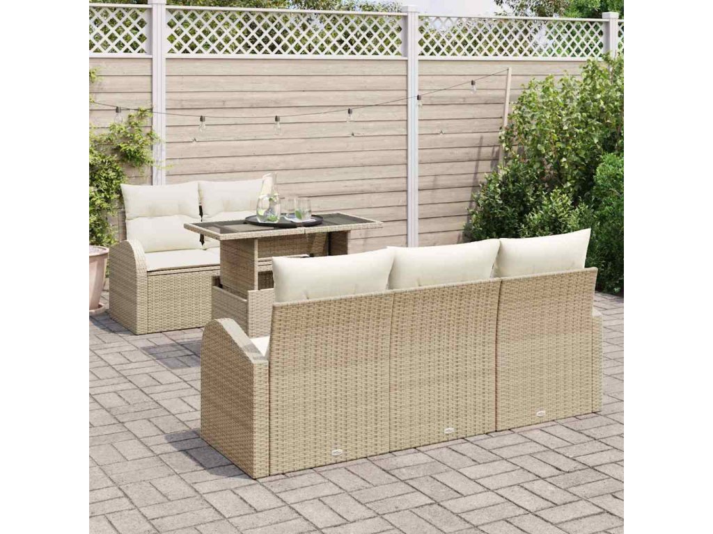 Súprava záhradných pohoviek s vankúšom 6 pcs Béžová polyratan 3348557