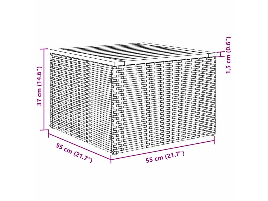 - 1 x záhradný stolík: 55 x 55 x 37 cm (D x Š x V)