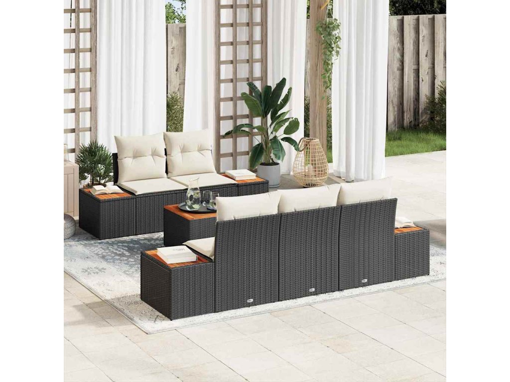 Súprava záhradných pohoviek s vankúšom 6 pcs Čierna Poly ratan 3348023