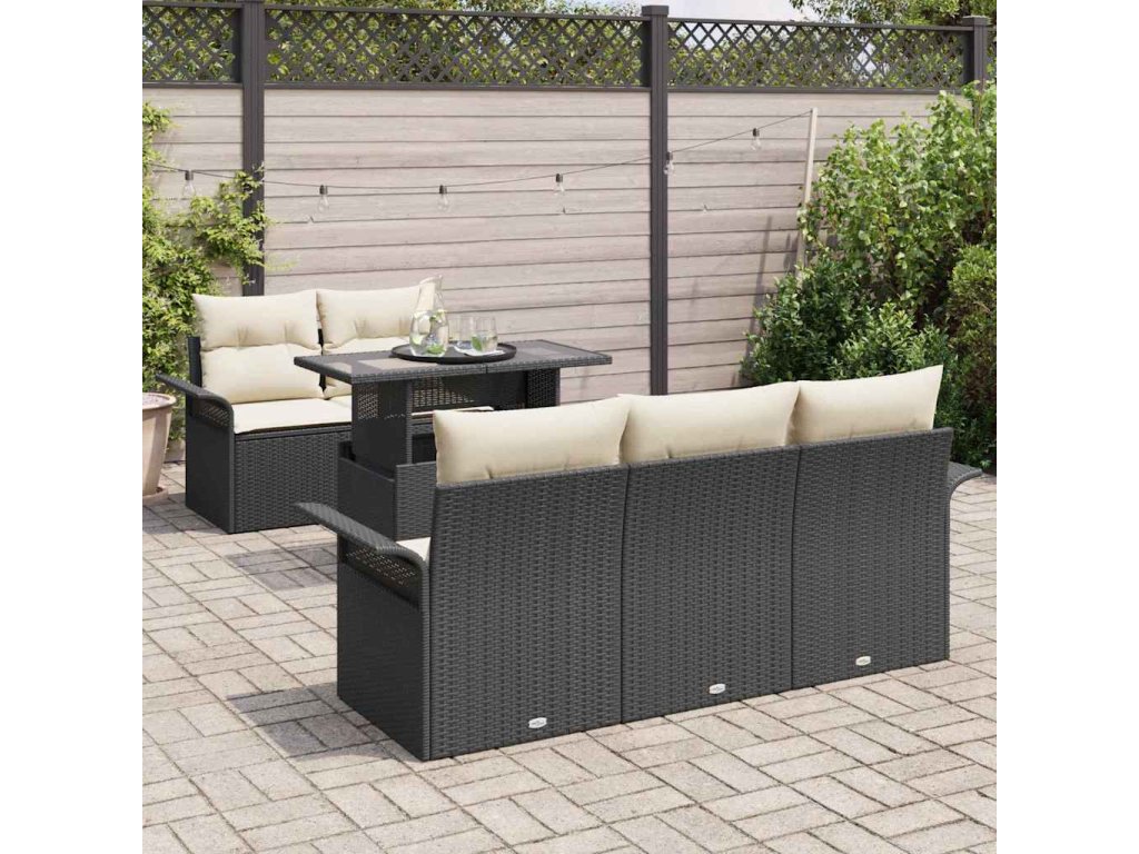Súprava záhradných pohoviek s vankúšom 6 pcs Čierna polyratan 3348193