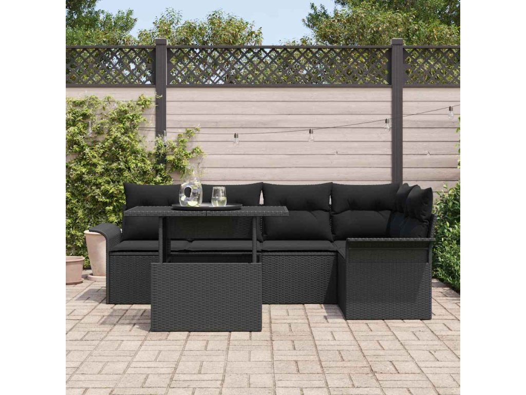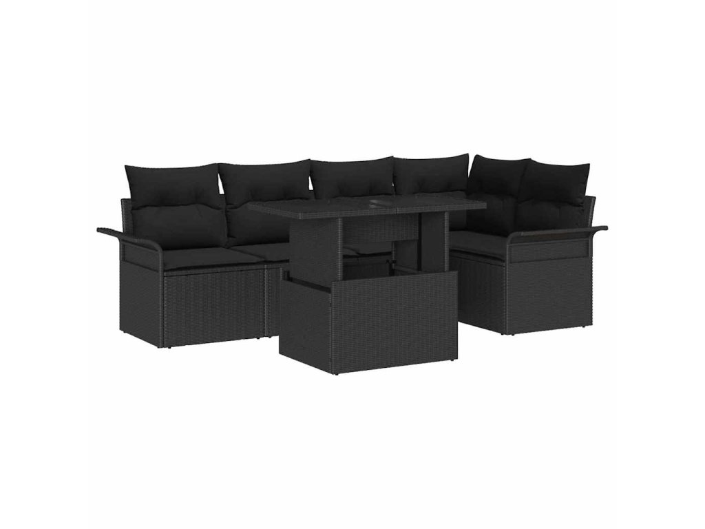 Súprava záhradných pohoviek s vankúšom 6 pcs Čierna polyratan 3348289