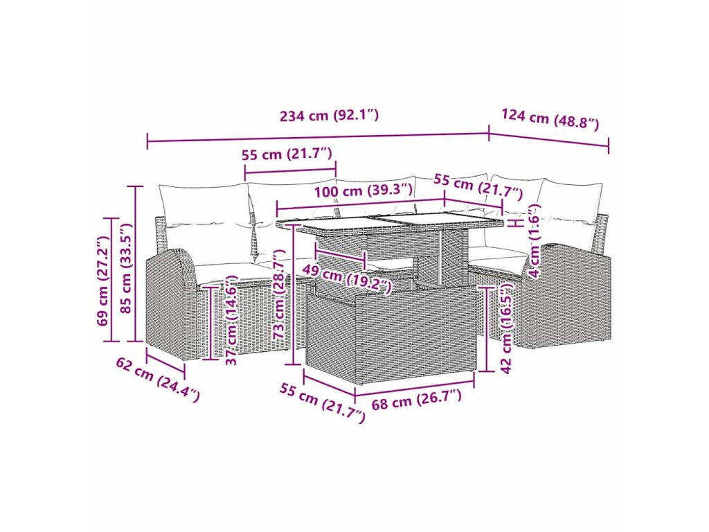 Tento modulárny záhradný gaučový set je super moderný a skvelý pre tých, ktorí hľadajú štýl aj praktickosť. S moderným dizajnom perfektne vylepšuje záhradné a terasové priestory svojim jednoduchým a minimalistickým vyžarovaním. Je ideálny na letné akcie či pokojnú relaxáciu vonku, kde sa funkčnosť stretáva s eleganciou.