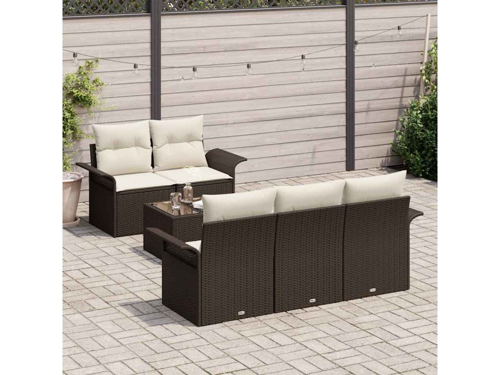 Súprava záhradných pohoviek s vankúšom 6 pcs Hnedá a smotanová 3353907
