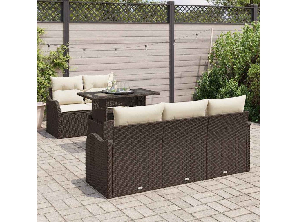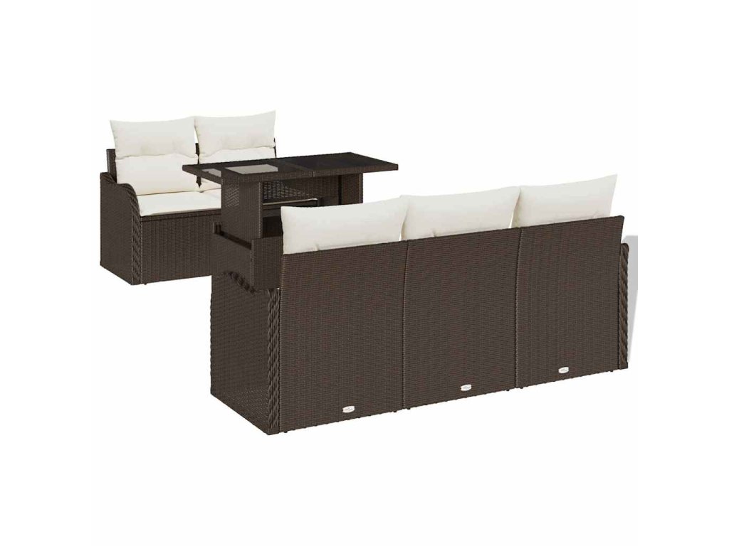 Súprava záhradných pohoviek s vankúšom 6 pcs Hnedá polyratan 3348374